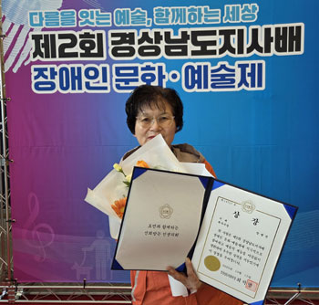 »çõ½ÃÀå¾ÖÀÎÁ¾ÇÕº¹Áö°ü(°üÀå ¹èÁø±â) ¼Ò¼Ó Àå¾ÖÀÎ ¹®ÀÎÈ¡¤¼¿¹ µ¿¾Æ¸® ¡®¸ÔÀ» »ç¶ûÇÏ´Â ¸ðÀÓ¡¯ÀÇ Á¤¸² Àå¸í¼± ȸ¿øÀÌ Á¦2ȸ °æ»ó³²µµÁö»ç¹è Àå¾ÖÀÎ ¹®È¡¤¿¹¼úÁ¦¿¡¼ ¼¿¹ ºÎ¹® ÃÖ¿ì¼ö»óÀ» ¼ö»óÇß´Ù.