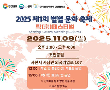 Çѱ¹Æú¸®ÅØ´ëÇÐ Ç×°øÄ·ÆÛ½º°¡ ¿î¿µÇÏ´Â »çõ¿Ü±¹ÀαٷÎÀÚÁö¿ø¼¾ÅÍ(¼¾ÅÍÀå ±èÅÂÈ)´Â ¿À´Â 11¿ù 9ÀÏ(ÀÏ) ¿ÀÈÄ 1½ÃºÎÅÍ 4½Ã±îÁö »çõ½Ã »ç³²¸é ÃÊÀü°ø¿ø¿¡¼ ¿Ü±¹ÀÎÀÌÁֹΠ¹× Áö¿ªÁֹΠµî 400¿©¸íÀ» ´ë»óÀ¸·Î ¡®Á¦1ȸ º°º° ¹®ÈÃàÁ¦ ¶ô(Õ¥)Æä½ºÆ¼¹ú¡¯À» °³ÃÖÇÑ´Ù.