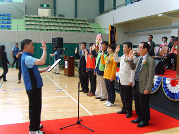 1ºÎ ±â³ä½Ä¿¡¼ ´ÜÀ§ÇùÀÇȸ ¹× ȸÀå´Ü ÀÔÀå¿¡ ÀÌ¾î ½Ã»ó°ú ÃÑÀç °Ý·Â±ÝÀÌ Àü´ÞµÇ°í ´ëȸ»ç(°æ³²Áö±¸ ³²ºÎÁö¿ª ÇùÀÇȸÀå) ȯ¿µ»ç·Î À̾îÁ³´Ù.