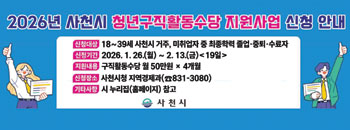 »çõ½Ã´Â °ü³» ¹ÌÃë¾÷ û³âÀÇ ±¸Á÷Ȱµ¿À» Áö¿øÇϱâ À§ÇØ ¡®2026³â û³â±¸Á÷Ȱµ¿¼ö´ç Áö¿ø»ç¾÷¡¯ ´ë»óÀÚ¸¦ Áö³ 26ÀϺÎÅÍ 2¿ù 13ÀϱîÁö ¸ðÁýÇÑ´Ù.