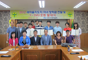 »çõ½Ã»õ¸¶À»ÁöµµÀÚȸ(ȸÀå ÀüÀç¼®)´Â Áö³ 23ÀÏ »çõ½Ã»õ¸¶À»È¸°ü ȸÀǽǿ¡¼ 2012³â »õ¸¶À»ÁöµµÀÚ ÀÚ³à ÀåÇÐ±Ý Àü´Þ ¹× Y-SMU»çõÆ÷·³ ¹ß´ë½ÄÀ» °¡Á³´Ù.